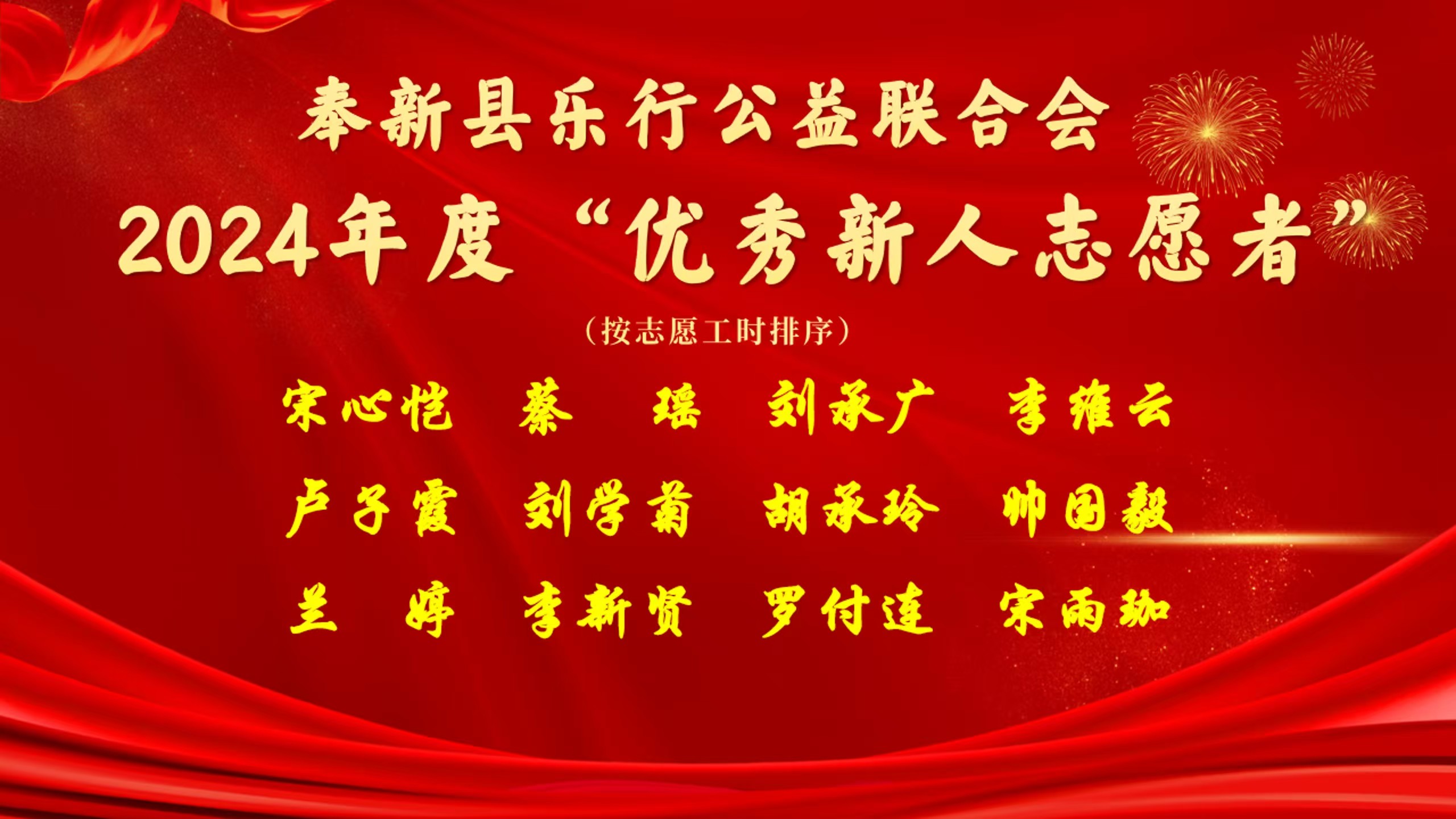 优秀新人志愿者(12名):宋心恺、蔡瑶、刘承广、李维云、卢子霞、刘学菊、胡承玲、帅国毅、兰婷、李新贤、罗付连、宋雨珈