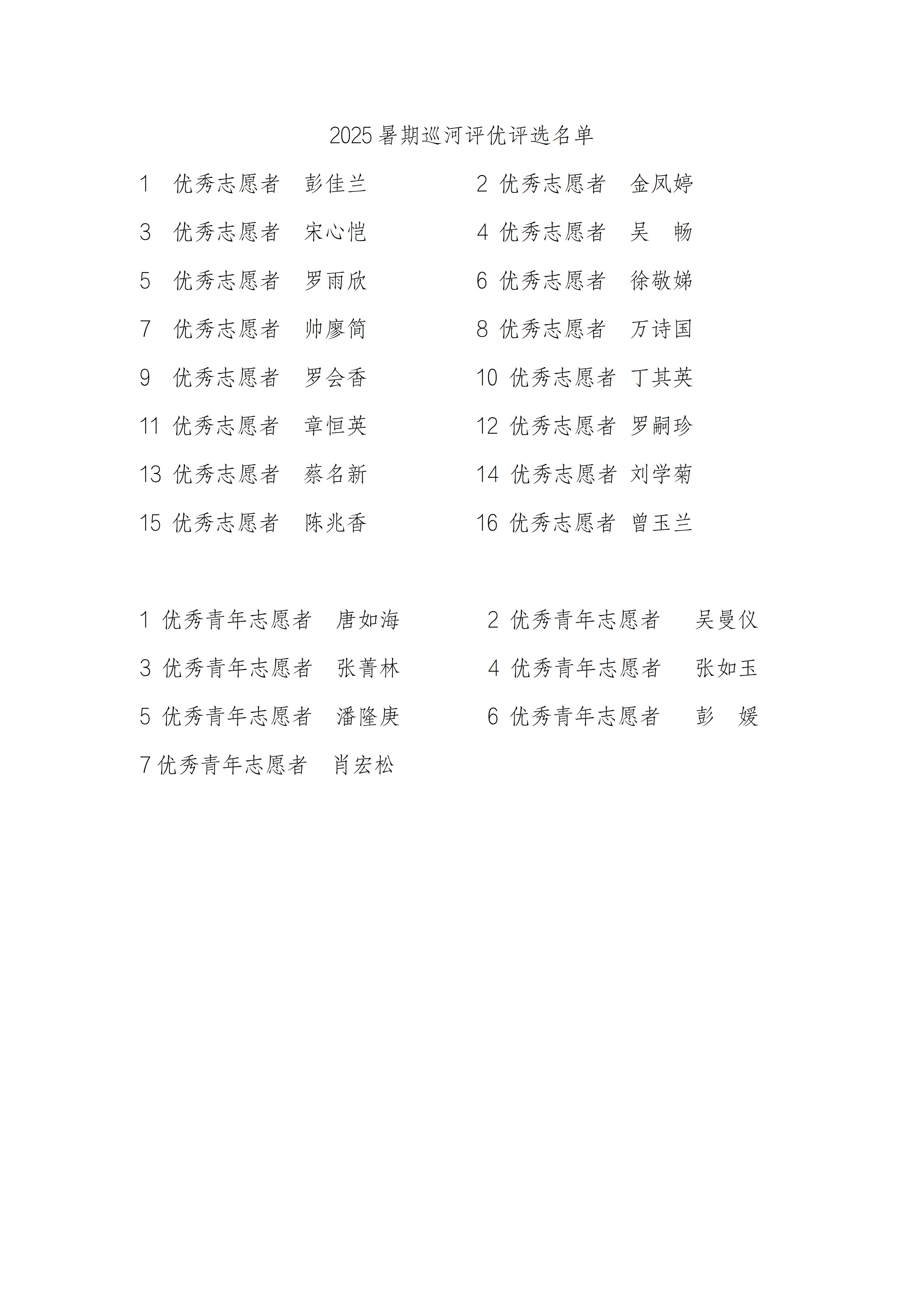2025年第七期暑期防溺水巡河志愿者评优公示