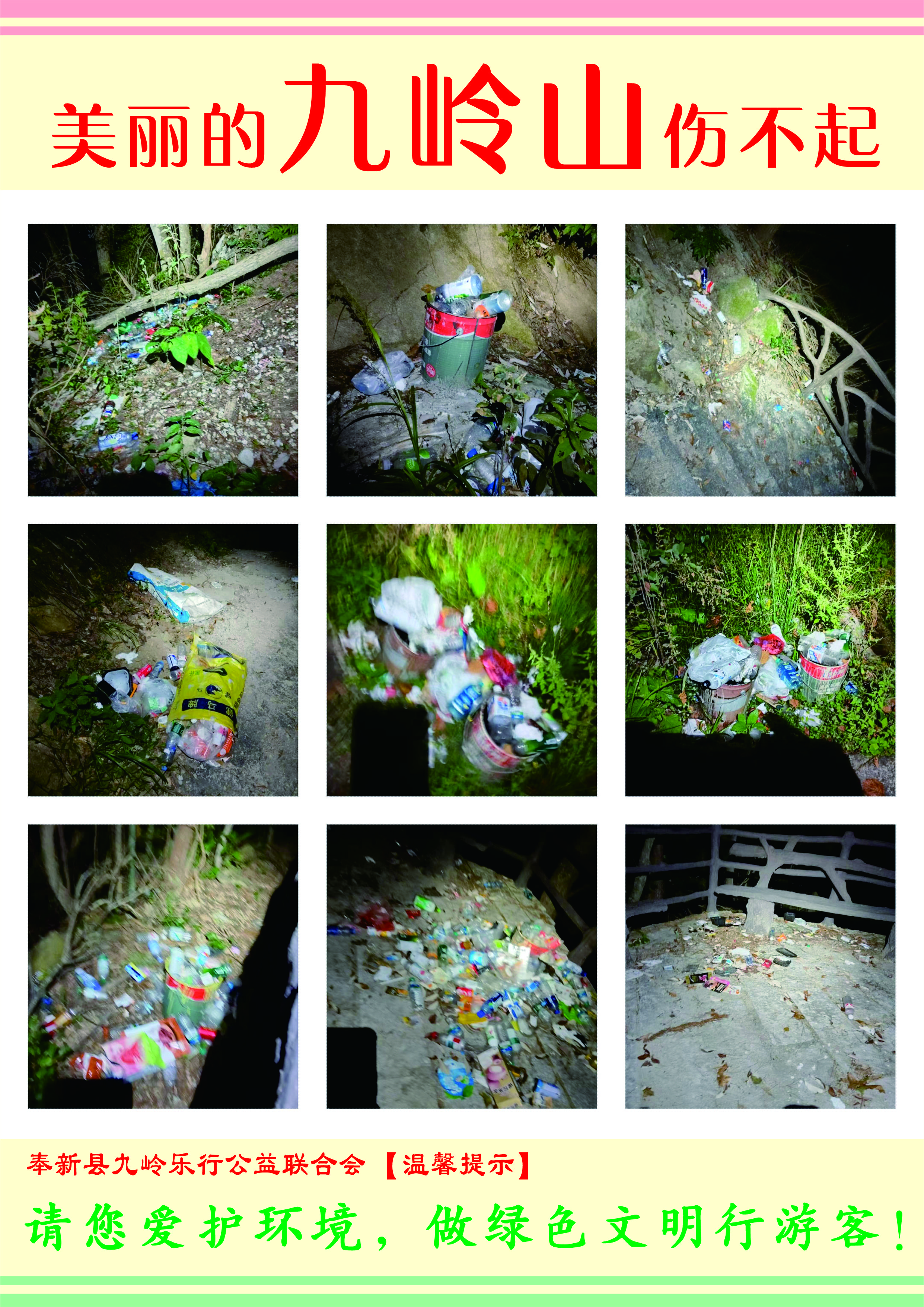 位于奉新西部的九岭山脉,森林覆盖率超过97%,是全球生物多样性关键区域之一。近年来,随着户外旅游热潮的兴起,九岭山脉逐渐成为众多游客心中的“网红打卡地”,相约来此爬山、露营、欣赏日出,沉浸于自然之美。然而,部分游客的不文明行为,也给这片原始山林留下了难以忽视的伤痕——那一些百年都无法自然降解的塑料垃圾。