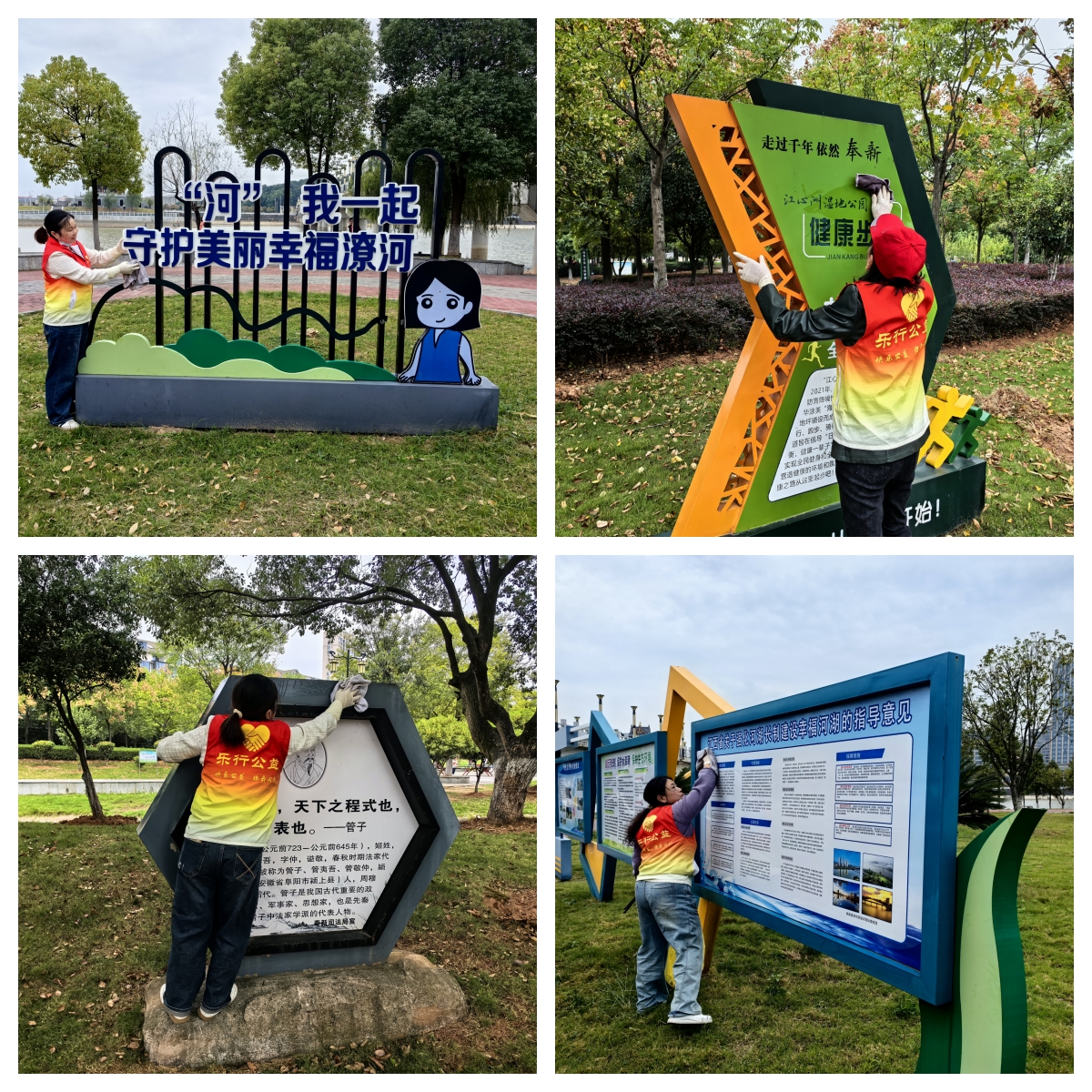 志愿者们手持毛巾,对公园内的宣传栏、运动健身器材、休息座椅等公共设施进行了细致的擦洗。他们不放过任何一个卫生死角,让这些便民设施焕然一新,用实际行动守护着城市的整洁“容颜”。