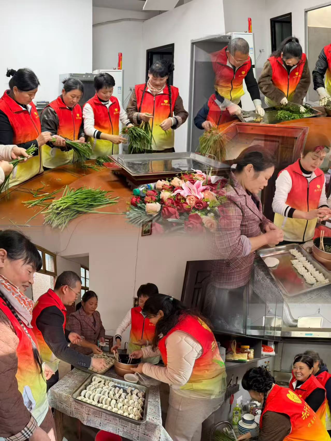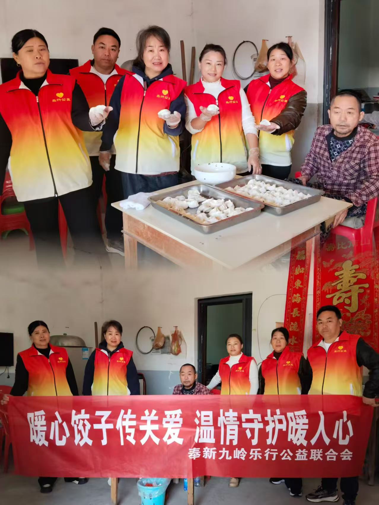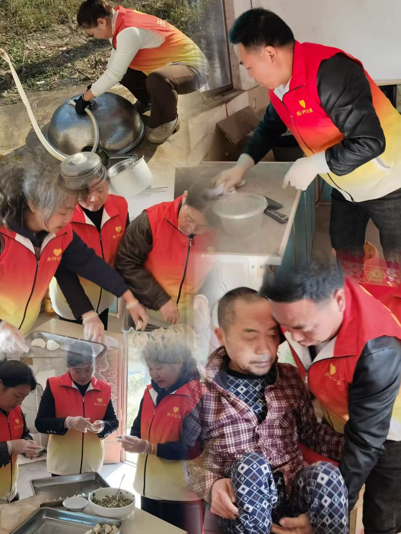 来到张家组老人家中,志愿者热情的拉着老人聊家常,细心收拾着家里里里外外,然后与老人一道忙碌起来。揉面、擀皮、包馅,动作娴熟,配合默契,现场欢声笑语不断,不一会儿,承载着浓浓情意的饺子便热气腾腾地出锅了。“太感谢了,这饺子真香!”,老人的一句话让志愿者动容,由心底生出多陪陪他们的感慨。         另一队到荞麦岗组的志愿者,也把老人的家当作自己的家,里里外外收拾得井井有条。收拾差不多,志愿者迅速行动,将精心准备的食材铺陈开来,揉面、擀皮、调馅,每个环节都井井有条,熟练而有序。老人坐在一旁,或传授技艺,或分享陈年往事,笑声与谈天声交织成一片欢快的乐章……欢聚总是短暂,回程车上想起老人送他们出门的不舍,千叮咛万嘱咐他们平时要注意防寒保暖,眼眶湿润了。
