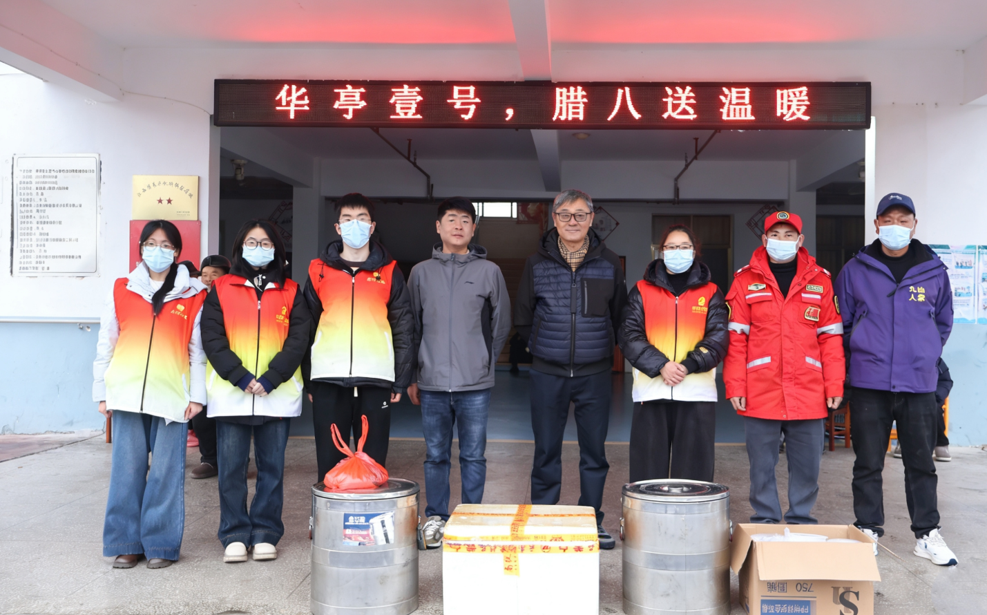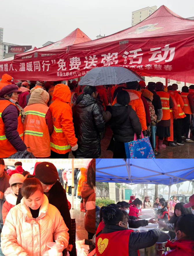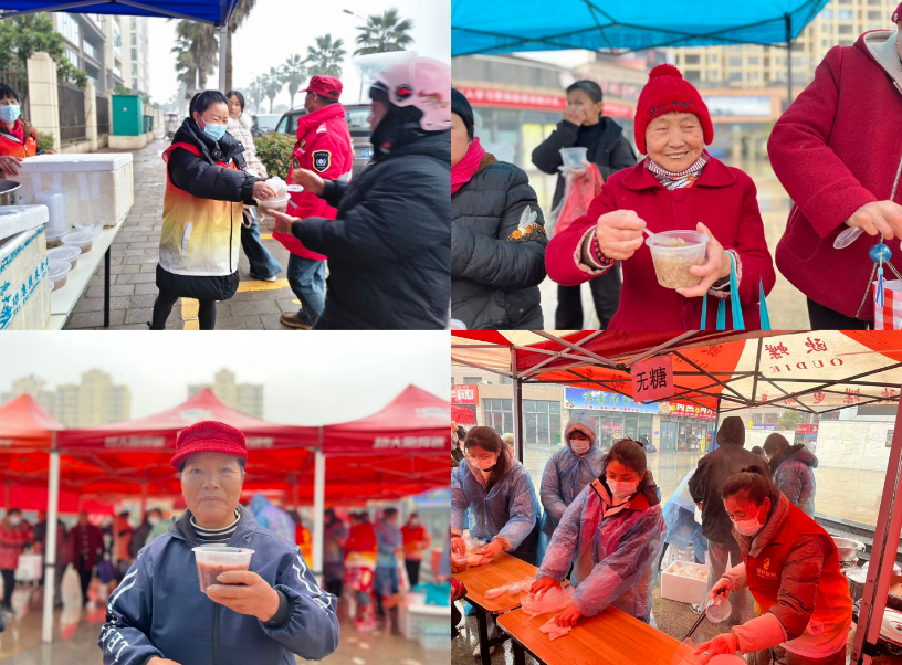 今日清晨,尽管气温低至7℃,寒意袭人,但奉新多个送粥点早已暖意涌动。县城华林广场、上富镇华亭壹号、农贸市场、敬老院,以及甘坊镇街上、横桥村等地,人群络绎不绝,笑语阵阵。