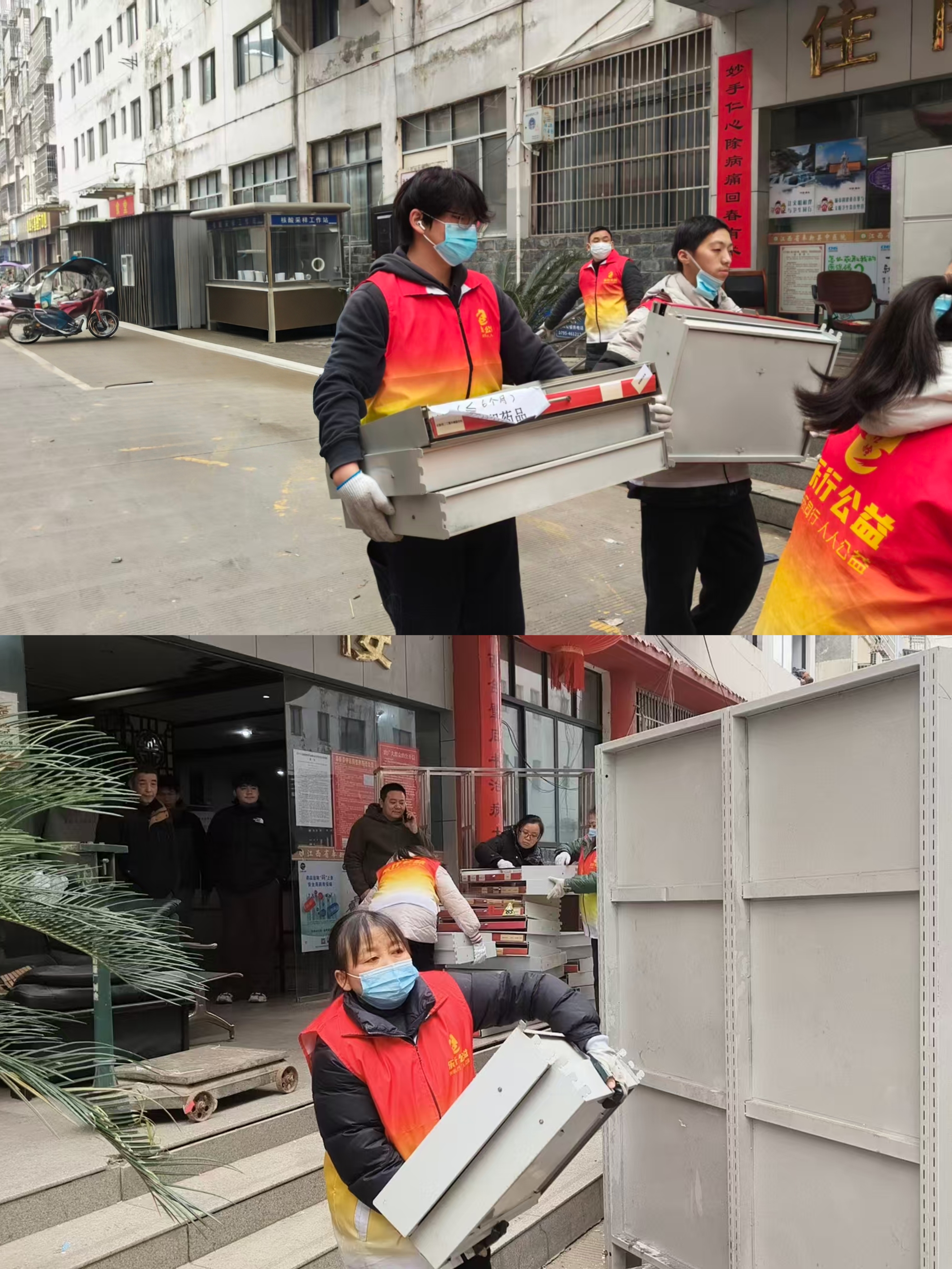 搬迁的这两日,物资转运组的志愿者们齐聚中医院旧址,身着统一的红马甲,以饱满的热情投入到忙碌的工作中。志愿者们两两配合、齐心协力,小心翼翼搬运着病床、桌椅、药柜、诊疗器械等物资,从七楼至一楼、从旧址到新院,一趟趟往返奔波,汗水浸湿了衣衫,却始终保持着高效的节奏,轻拿轻放中尽显细心与责任。