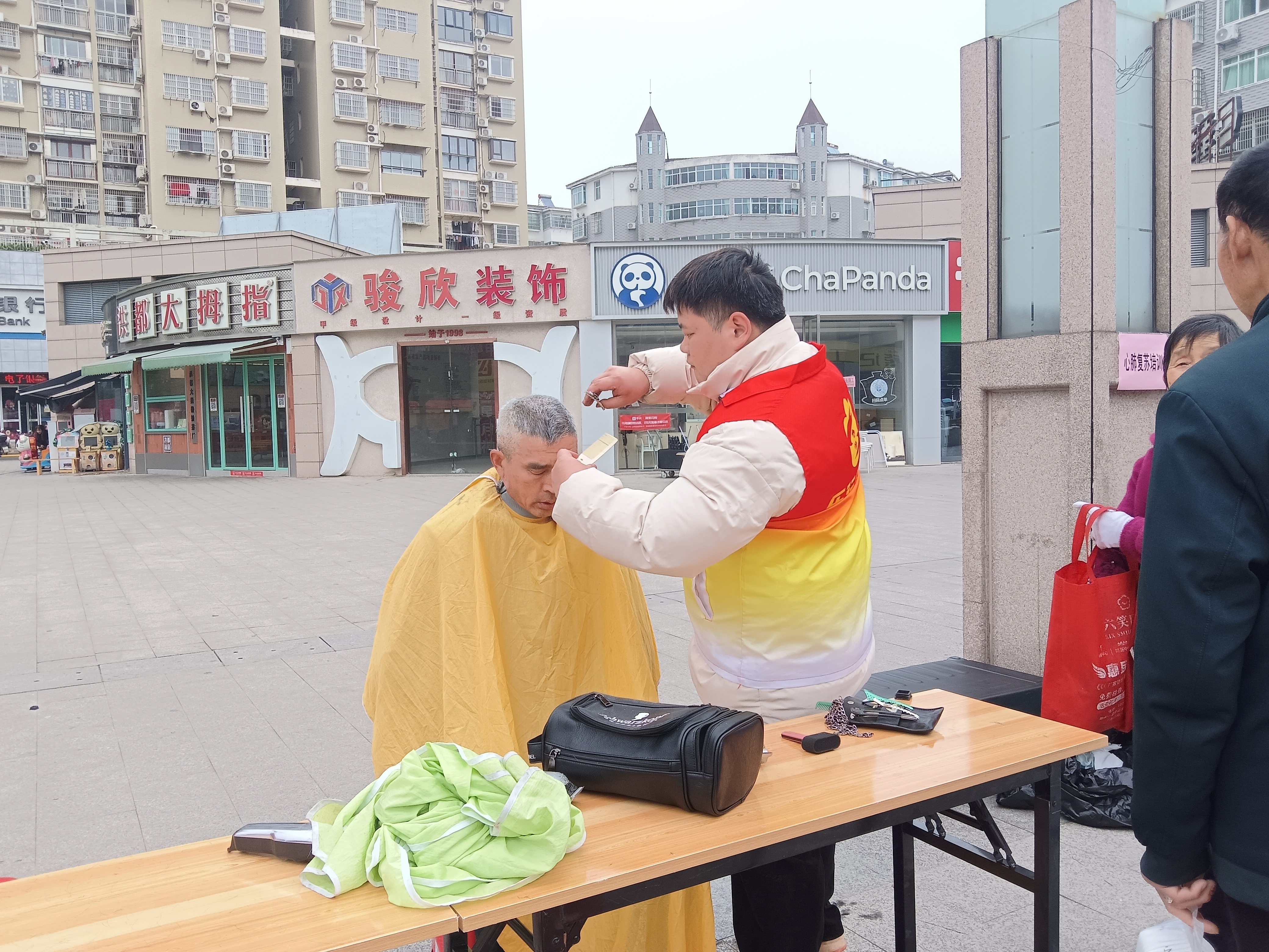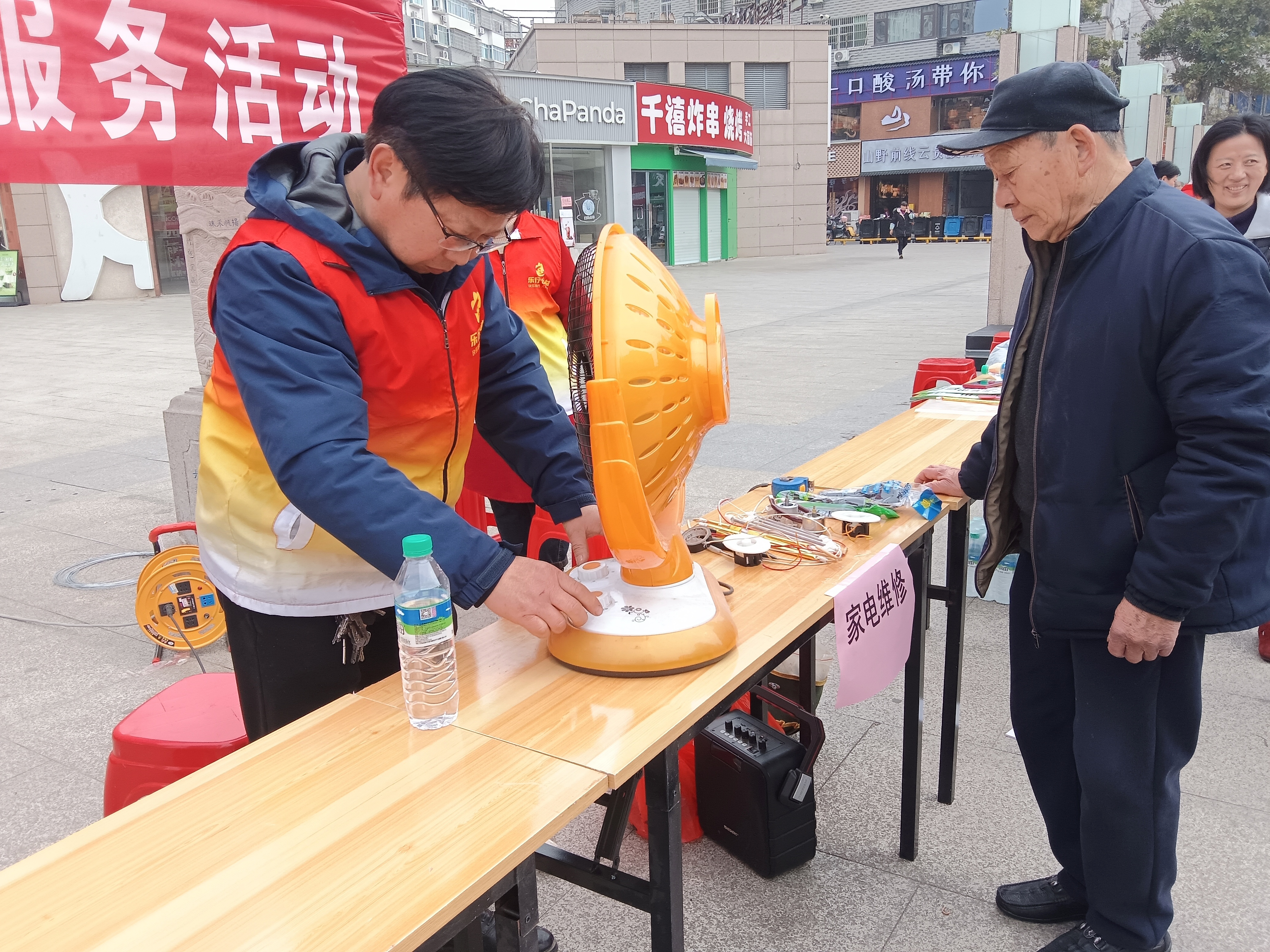 在华林广场的主服务现场,各点位的服务有序开展。县中医院医护人员为市民免费测血糖、量血压,细致讲解健康养生知识;消防大队、禁毒大队工作人员分别开展消防安全、禁毒知识宣传,提升市民安全防范意识;三良家电维修师傅现场排查、修理各类家用小电器,护眼世家为市民提供专业视力检测,卡诗造型理发师免费为市民修剪头发,贴心的便民服务解决了群众的日常需求,赢得阵阵好评。