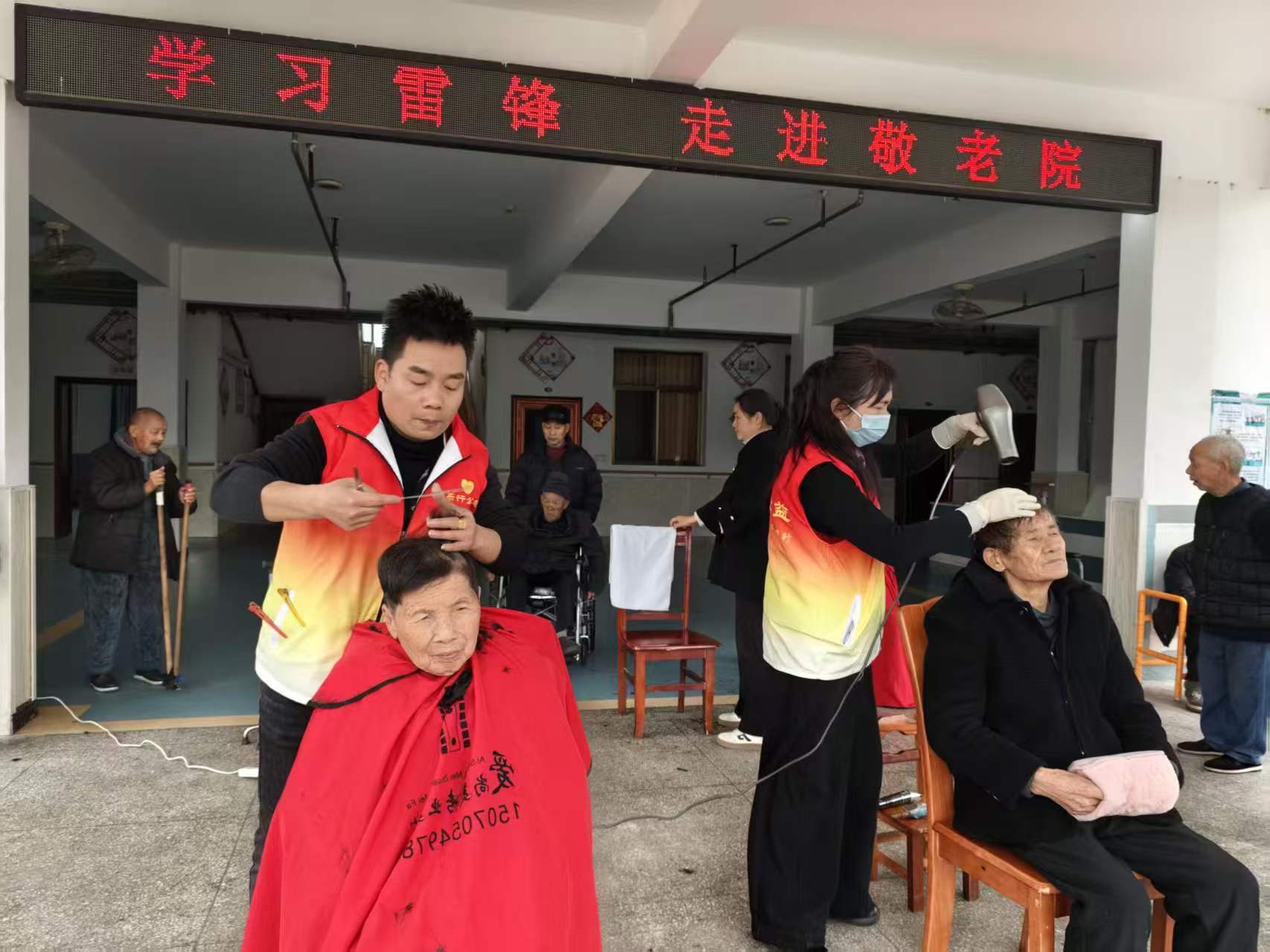 与此同时,乐行公益的志愿者们走进上富敬老院,为老人们送去暖心陪伴与服务。志愿者们为行动不便的老人理发洗发,仔细检修敬老院的轮椅,排查故障、调试零件,与老人们闲话家常,叮嘱老人们注意日常起居,用朴实的行动和关怀的话语,为老人们送去温暖。