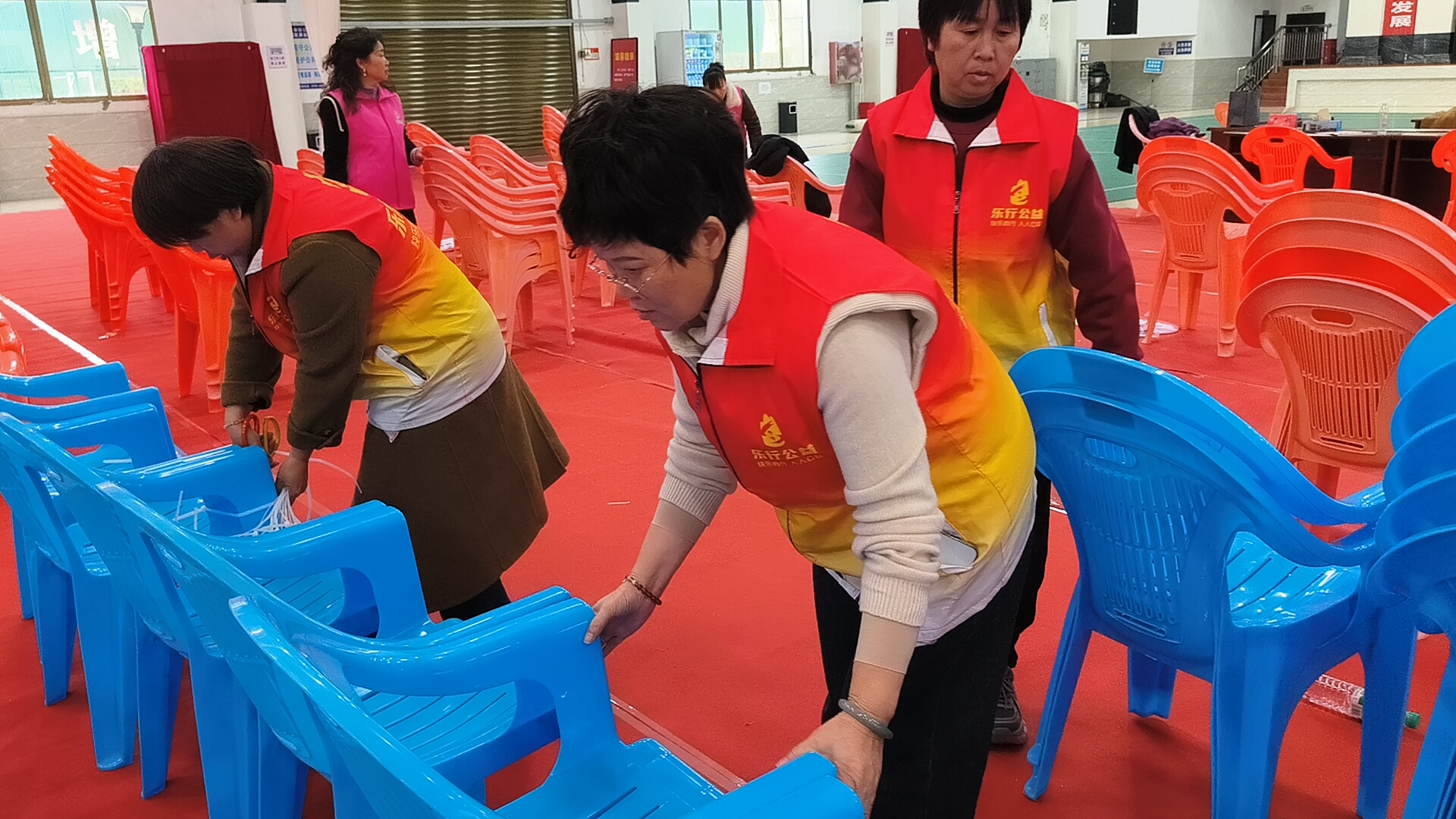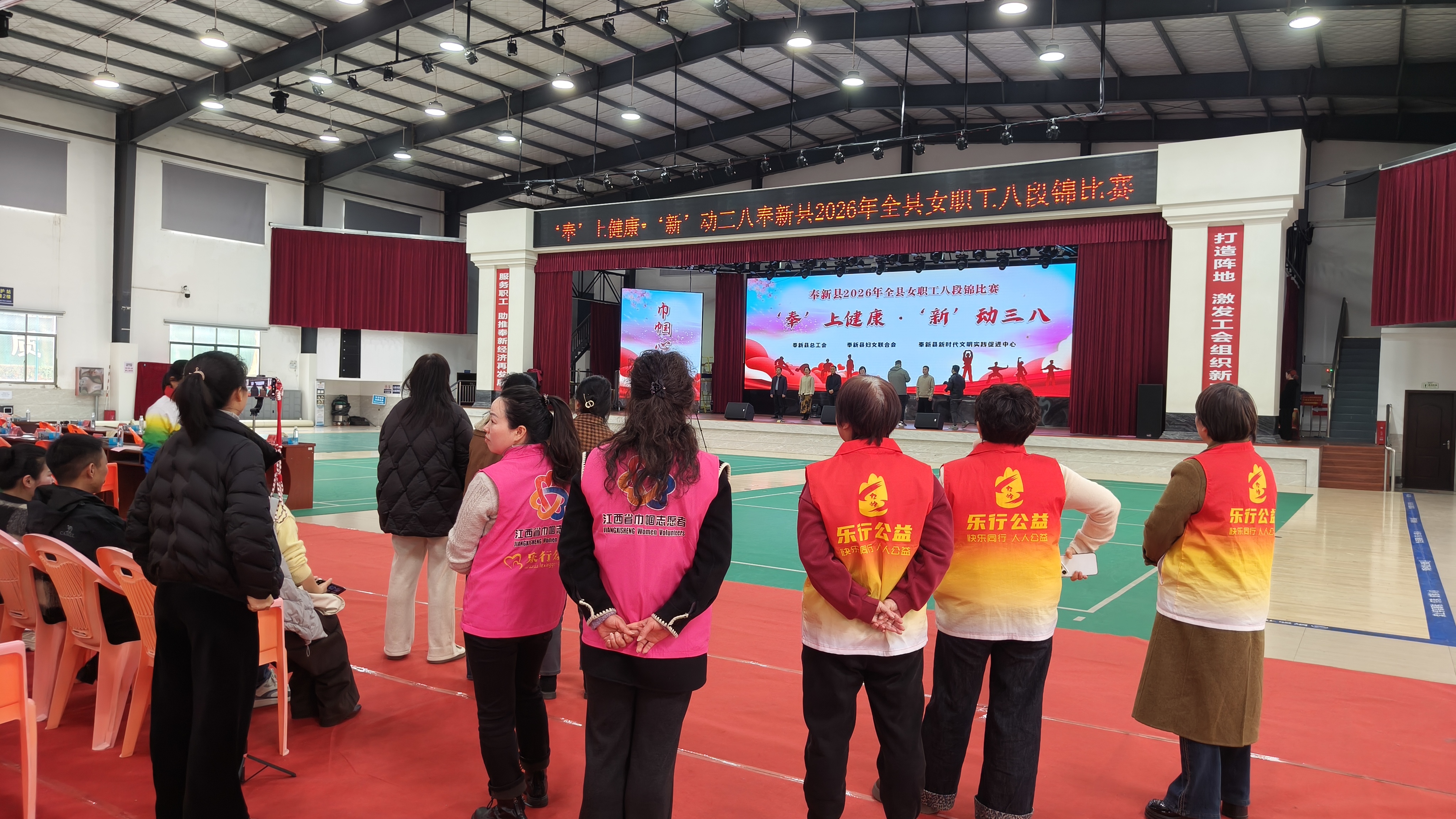 为热烈庆祝第 116 个 “三八” 国际劳动妇女节,近日,由县总工会、县妇联、县新时代文明实践促进中心联合主办的 2026 年 “‘奉’上健康・‘新’动三八” 全县女子八段锦比赛在县工人文化宫高新园区分部文体馆精彩开赛。乐行公益志愿者们早早来到现场,搬桌椅、摆道具,协助队伍签到、做好现场秩序维护等,积极参与活动服务,做好后勤保障工作。(胡珊珊)
