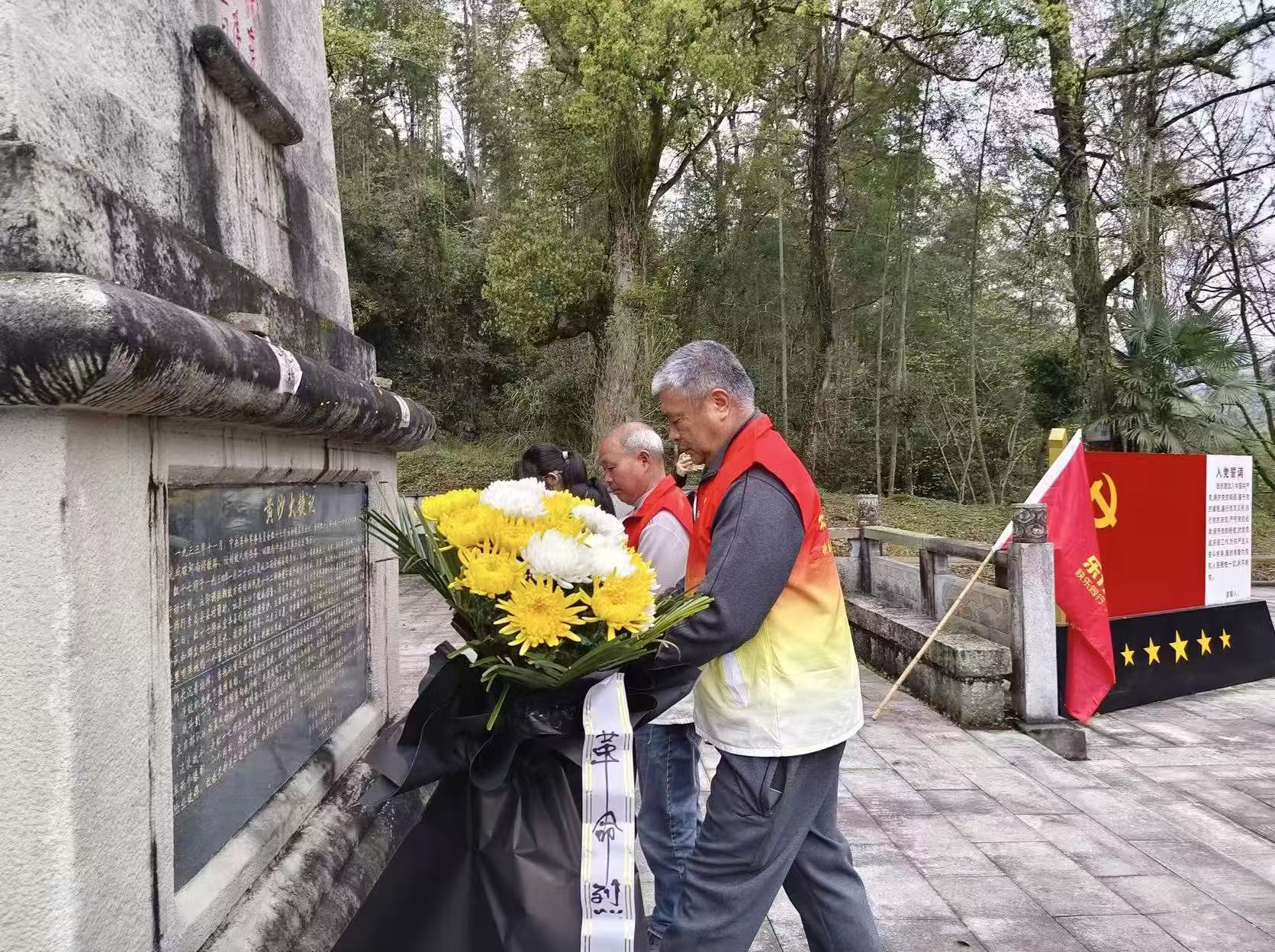 抵达目的地后,志愿者们首先仔细清扫了纪念碑周边环境,随后,全体志愿者排成两列,肃立默哀、诵读祭文、敬献鲜花,并绕碑缓步一周,以朴素而庄重的方式深切追思革命先烈。